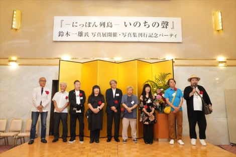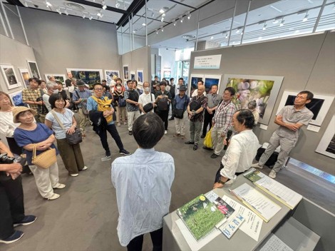 My first photo exhibition themed on living creatures, "-Nippon Islands – The Spirits of Living Creatures" has begun. On the first day, there were well over 1,000 visitors. Some people even came from as far away as Hong Kong just to see the exhibition. The afternoon gallery talk was also packed with people. In the evening, a commemorative party was held, and despite it being Obon, many people came to celebrate. It was truly heartwarming.